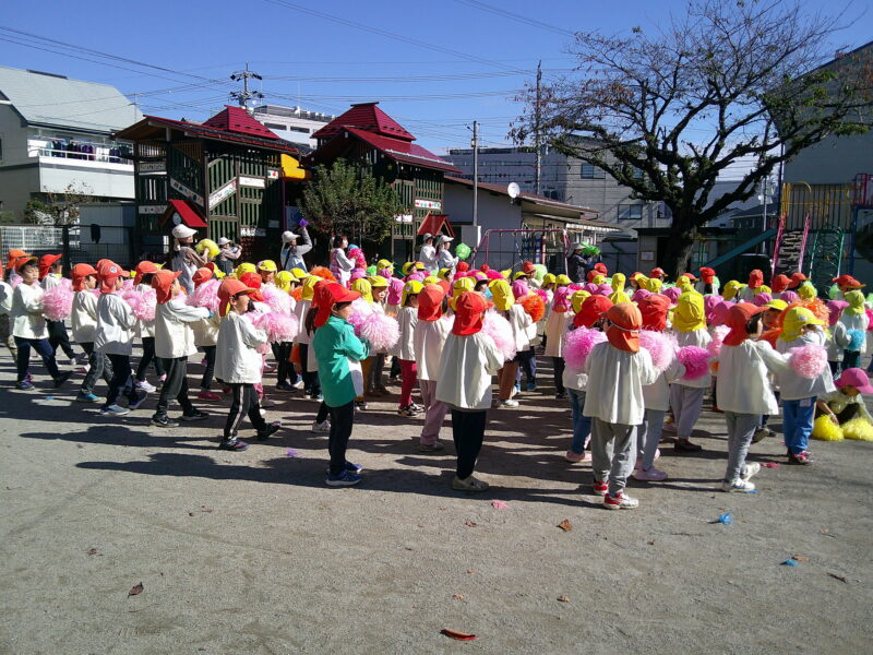 何度かマヤ堂での練習はしていましたが、園庭でボンボンを持って行うのは今日が初めてでした。