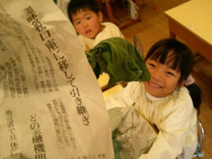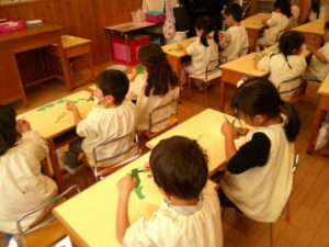 自分で顔や袴・手・髪の毛・足などをかいてハサミで切りました。