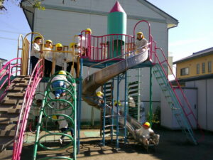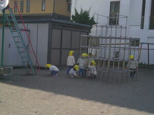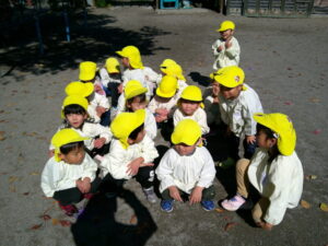 今日は、金曜日。天気も良く、体育教室もないので、外でたくさん遊んでから朝礼を行いました。