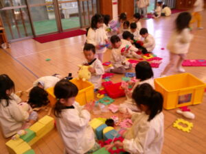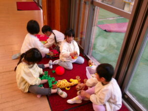 異年齢の関わり(年少・もも組で朝の活動や自由遊びをしたよ) 2025-11-18 昨日は年少さんと朝の活動(歌やリズム体操)をしたり、マヤ堂で遊んだりしました。 (朝の活動の写真がないのは残念ですが。) また、一緒に遊んだり、歌を歌ったりしようね~!!