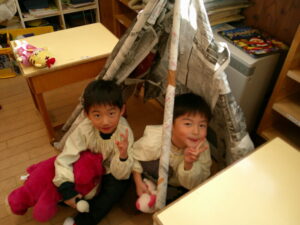 「先生、テント作って~」