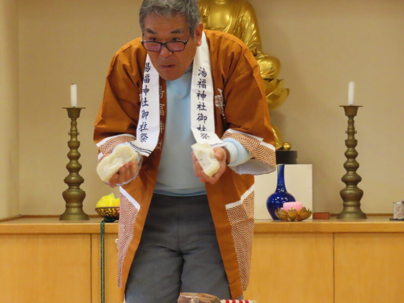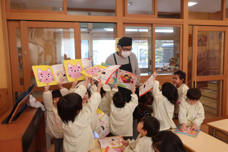 園長先生が、かがみもちには神様が宿っていて、開くことで神様のパワーがみんなに届くということを説明してくれました。