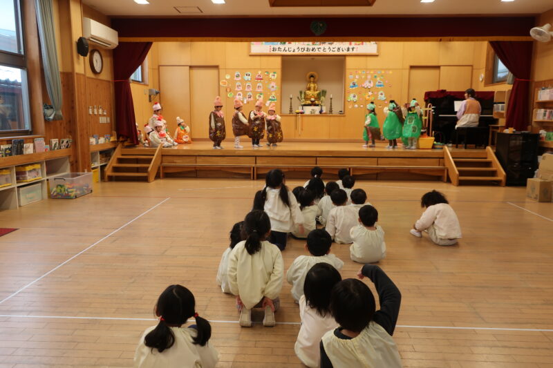 延期となってしまった発表会もいよいよ来週。たんぽぽ組さんと劇の見せ合いをしました。いい刺激になったね。