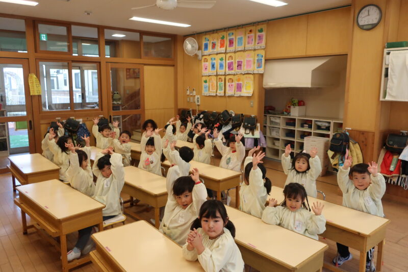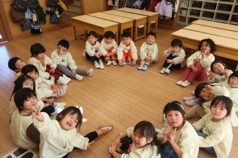 また、今日の午後は年少~年長組マヤ堂に集まってかがみ開きがありました。