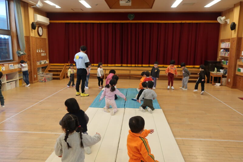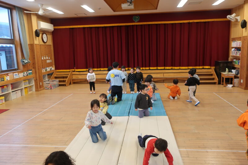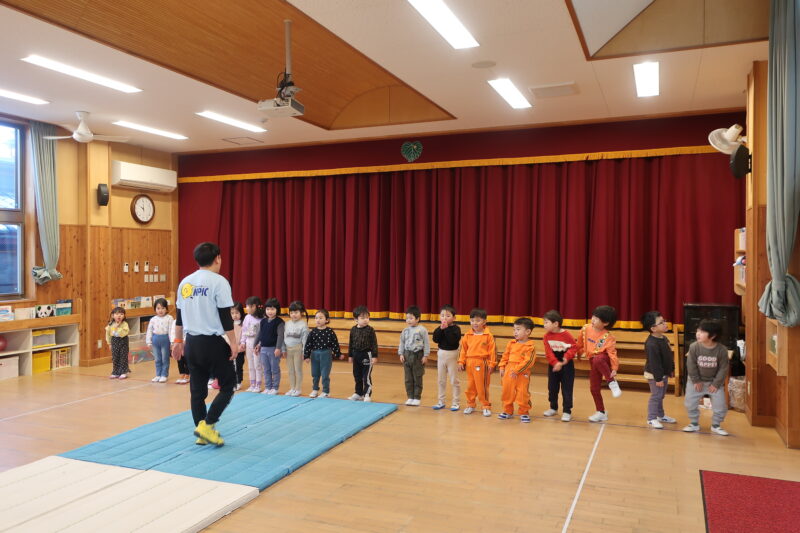 体育教室では、青木先生とも新年のご挨拶からスタート!マット運動を頑張りましたよ。
