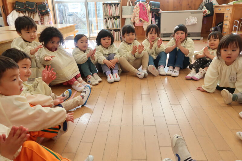 お友達がお話してくれたら拍手をしようねのお約束もみんな守れました。拍手をもらえて嬉しかったね!