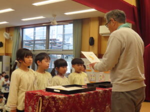 最後は、登園証書を代表のお友達がいただきました。